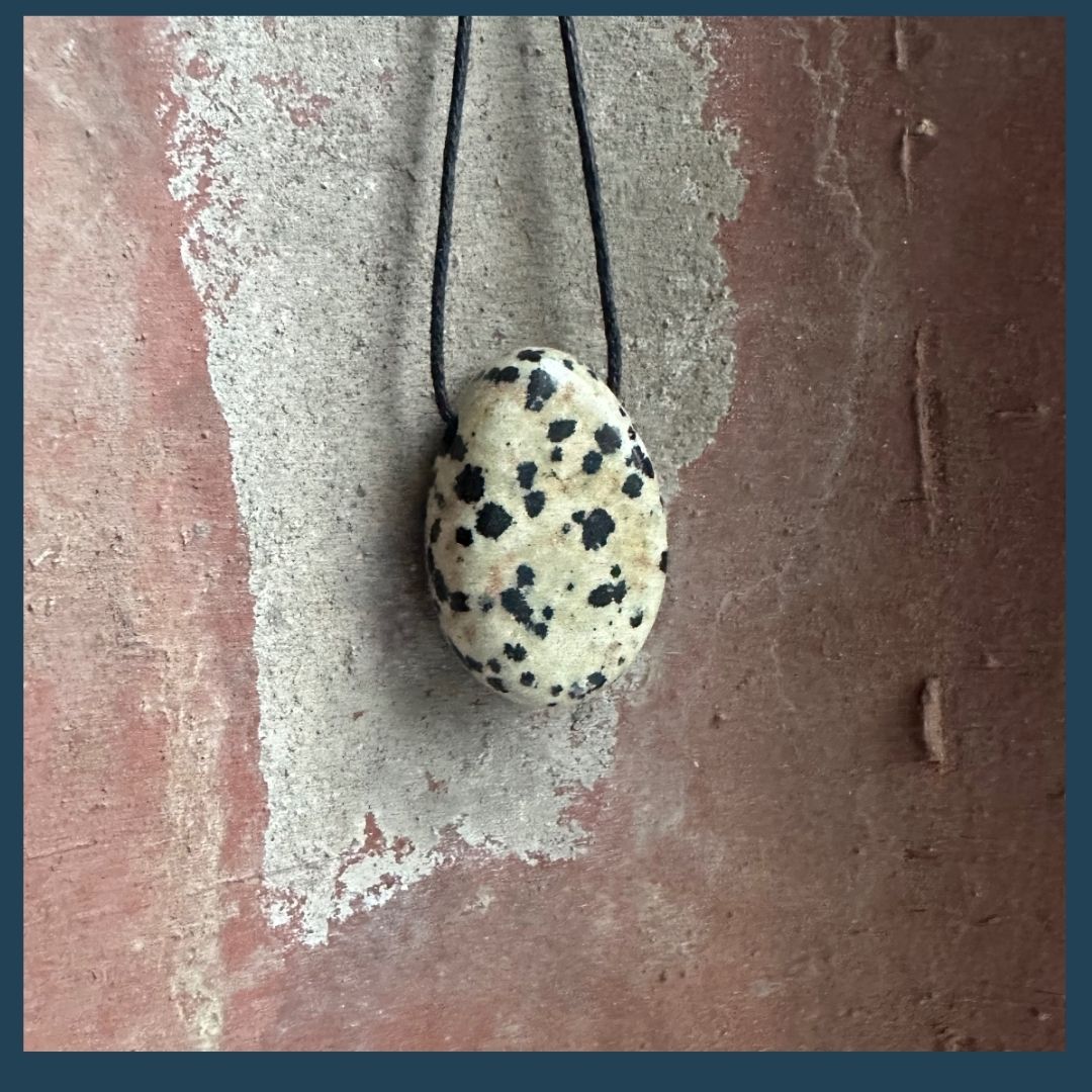 De Dotty Stone is vrolijk, speels en een tikkeltje eigenwijs, net als een hond op ontdekkingstocht! Deze hanger van dalmatiër jaspis zit vol zwarte vlekjes op een lichte ondergrond en voelt als een trouwe viervoeter die altijd bij je is. Hij geeft je vrolijke energie én een gevoel van bescherming.