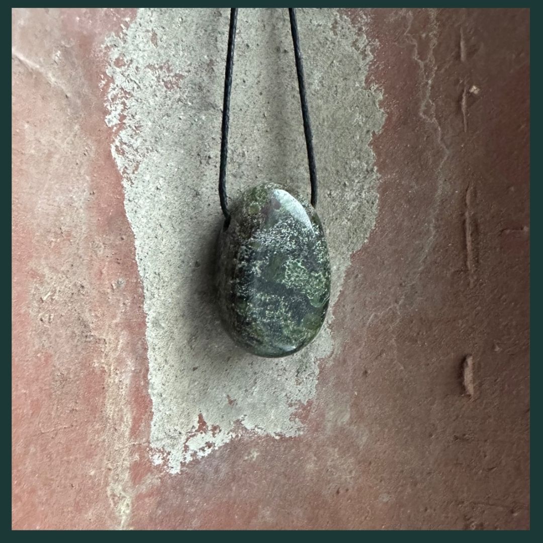 De Dragon Stone voelt alsof je een stukje van een eeuwenoude draak met je meedraagt. Deze hanger van drakenbloed jaspis combineert diepe groentinten met vurige roodheid, alsof er krachtig leven door de steen stroomt. Een perfecte steen voor kinderen die hun moed willen vinden of versterken.